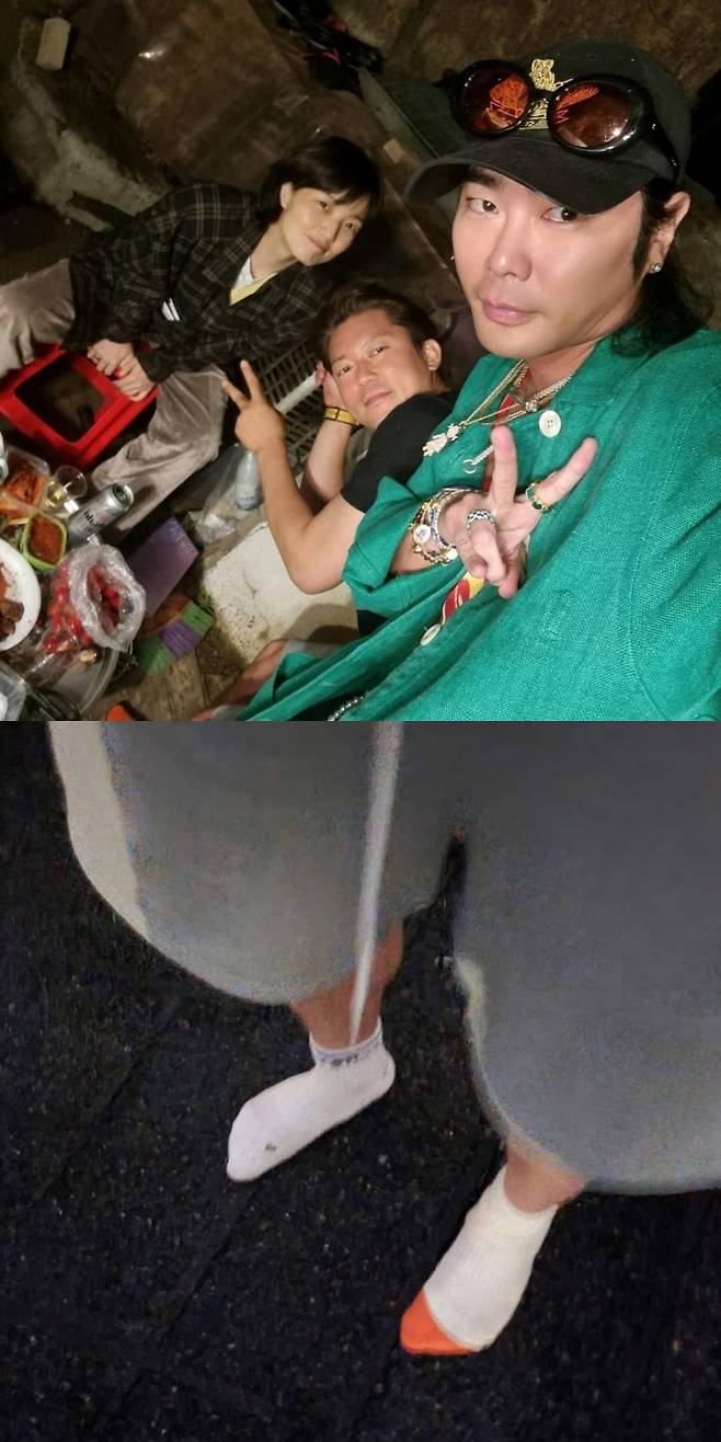 사진에는 김대호가 자신의 집을 찾은 안영미를 신발도 없이 양말만 신은 채 마중 나온 모습이 담겨 있다. 심지어 그는 짝짝이 양말을 신은 채 등장, 예상치 못한 프리한 환영 패션이 보는 이들의 시선을 사로잡는다.
