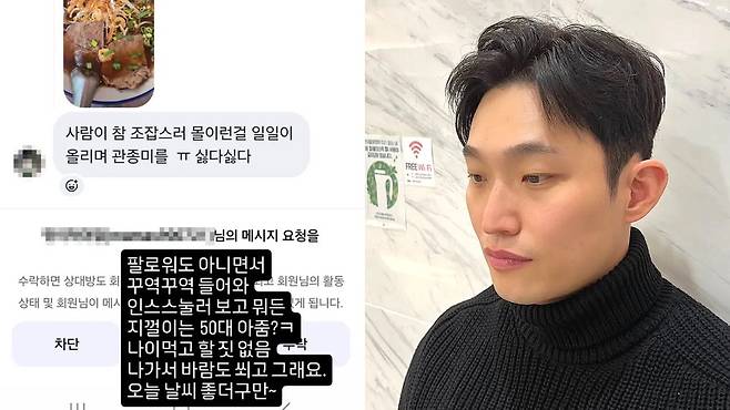 [TV리포트=배효진 기자] MBN '돌싱글즈3' 출연자 유현철이 악성 메시지를 공개하며 불쾌감을 드러냈다.