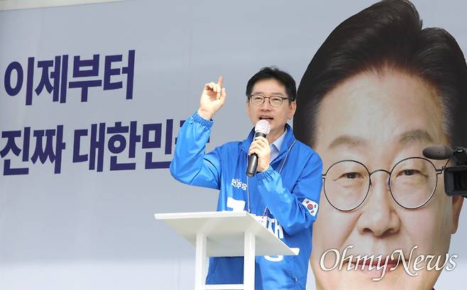 더불어민주당 이재명 대통령후보의 김경수 총괄선대위원장이 경남 고성과 통영을 찾아 유세하며 이같이 강조했다. 경남지사를 지낸 김 위원장은 26일 고향인 고성에 이어 통영을 돌며 '이재명 후보의 대통령 만들기'에 나섰다.