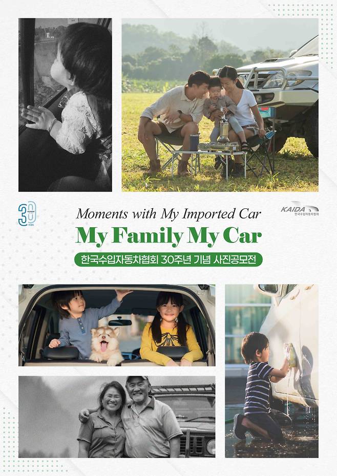 한국수입자동차협회(KAIDA)는 다음 달 25일까지 창립 30주년을 기념 사진 공모전 ‘마이 패밀리, 마이 카(My Family, My Car)’를 개최한다고 26일 밝혔다.