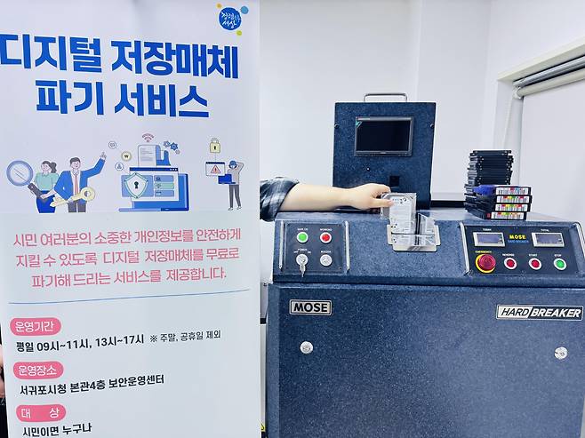 "개인정보 유출 걱정 끝!"…서귀포시, 디지털 저장매체 파기 서비스 운영
