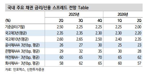김상인 신한투자증권 연구원은 “국고채 가산금리 영역인 크레딧물에 대한 수요는 단기적으로 견고할 전망”이라면서 “다만 이제서야 본격화되는 트럼프 관세 리스크도 하반기에는 감안해야 한다”고 봤다.