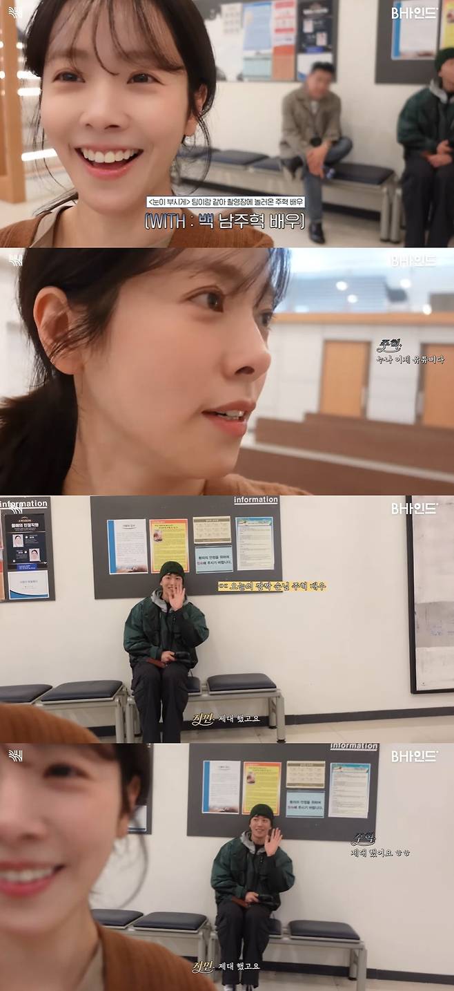 촬영장 한쪽에서 카메라를 든 한지민의 옆에는 한 남성의 목소리가 들려 눈길을 끌었다. 한지민이 화면을 비춘 곳에는 다름 아닌 남주혁이 모습을 드러냈고, 자막을 통해 두 사람이 인연을 맺었던 '눈이 부시게' 팀과 함께 남주혁이 촬영장에 놀러 왔음이 밝혀졌다.
