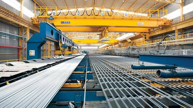 ▲ 동국제강 인천공장에서 철근이 생산되는 모습