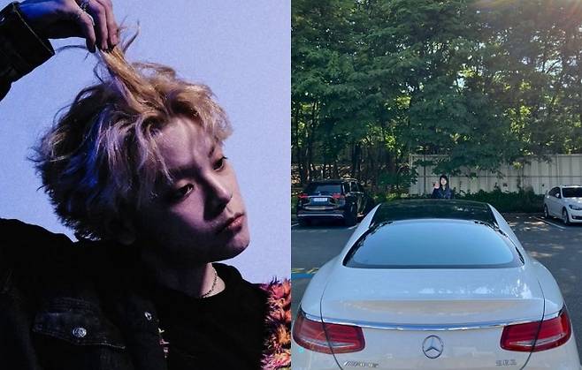 사진에는 노엘이 주차장에 세워진 흰색 벤츠 차량 앞에서 브이 포즈를 취하는 모습이 담겼다. 노엘이 함께 찍은 차량의 신차가는 약 2억 중반에 이르는 것으로 알려졌다.
