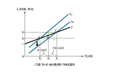 이처럼 승수효과로 인해 소득이 증가하자, 그다음에 '신투자'가 일어나 국민소득이 한층 더(가속도로) 증가하는 현상을 '가속도 효과'라고 부른다. 이제 번 돈으로 호텔 사장은 정부 대출을 갚고, 세금도 내게 되니 누이 좋고 매부 좋다!