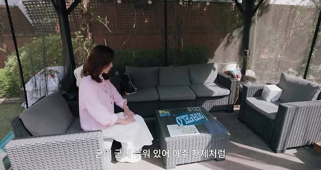 이어 "내가 이 아지트를 만든다고 했을 때 남편이 구박을 하더니 둘이 있으면 항상 나는 좁은 소파에 앉고 남편은 넓은 소파에 황제처럼 앉아 있는다. 내가 해놓은 건데"라고 푸념, 큰 웃음을 자아냈다.