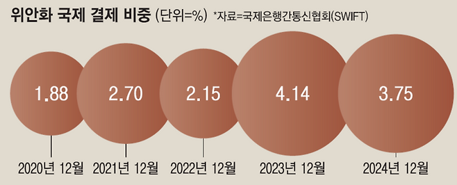 김효상 대외경제정책연구원 팀장은 “위안화 국제화 속도가 빨라질수록 원화 투자 자산이 위안화로 갈 수 있고, 국제금융시장을 불안하게 만드는 요인으로 작용해 원화값 변동성을 높일 수 있다”며 “글로벌 통화패권을 둘러싼 미국의 견제가 강화될 수 있어 잠재 리스크에 대한 대비가 필요하다”고 말했다.