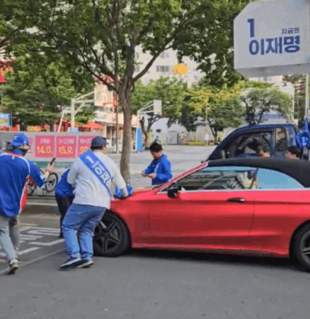 이재명 더불어민주당 대선 후보 선거 유세 현장에서 차를 위협적으로 몰아 운동원들을 다치게 한 20대 남성이 경찰에 붙잡혔다.