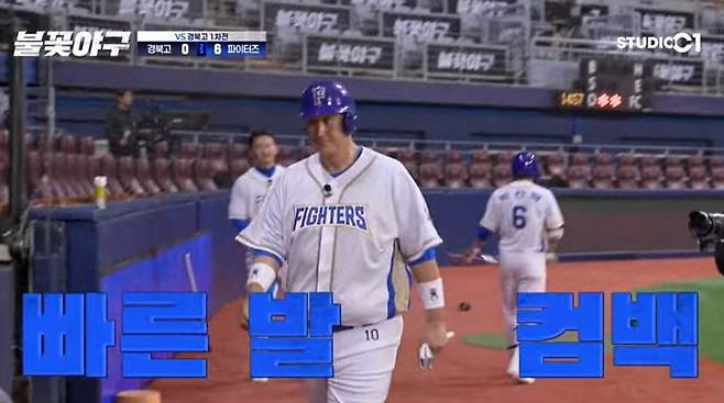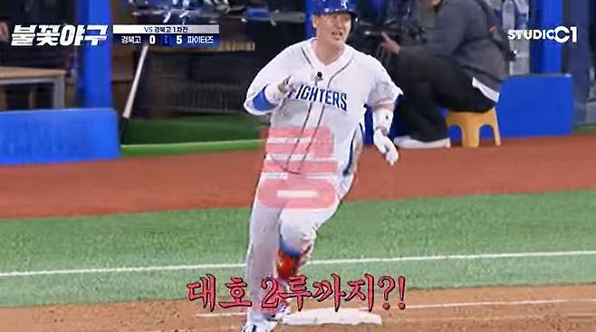 이어 불꽃 파이터즈 1호 홈런의 주인공 이대호가 등장했다. 멤버들이 "연타석 홈런 하는 거 아니냐"라고 기대하는 가운데, 이대호는 2루까지 달렸다. 정근우는 "제발 가라. 빨리 좀 가라"라며 애타게 외쳤다. 정용검은 "벌써 2타석에 3타점이다"라고 했고, 김선우는 "야구가 이렇게 쉽나요?"라면서 "초반이지만 MVP 후보들이 진짜 많다"라고 감탄했다.