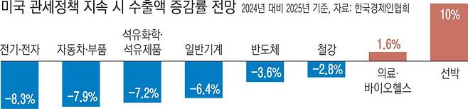 국내 기업들 “미 관세정책 계속 땐 올 수출 4.9% 감소”