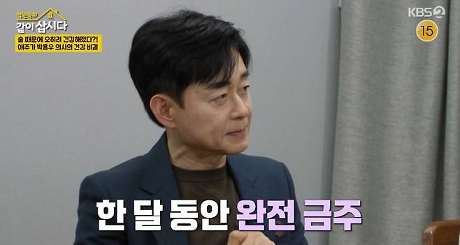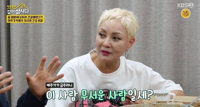 '같이 삽시다' 홍진희가 건강관리를 위해 '음주 안식월'을 갖는다는 가정의학과 전문의 박용우의 고백에 "이 사람 무서운 사람이네"라며 놀라움을 표했다.