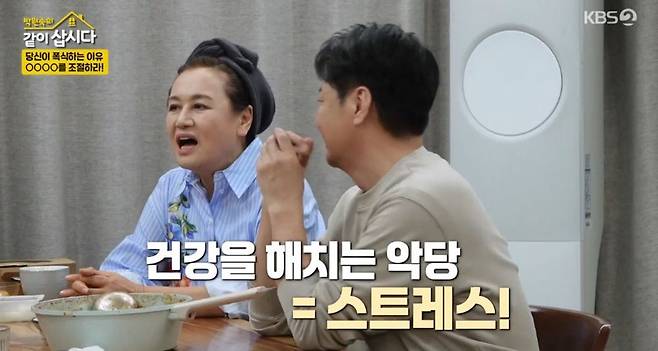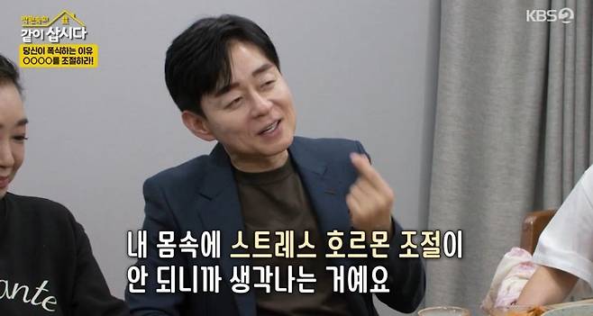박용우는 또 “살면서 탄수화물의 유혹을 느껴본 적이 있나?”라는 질문에 “건강을 해치는 악당은 당이 아니라 스트레스다. 일반적으로 과식을 부르는 것이 당분과 지방이다. 이런 것들을 찾는 건 내 몸속에 스트레스 호르몬 조절이 안 되기 때문이다. 궁극적으론 호르몬 관리를 해야 한다”라고 조언했다.