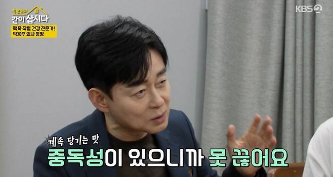 박용우는 또 “내가 음식중독 전문가다. 요즘 탄수화물 중독에 빠진 사람들이 많은데 나이가 들어서까지 끊어야 하느냐고 하면 난 거기에 동의하지 않는다”라고 설명했다.
