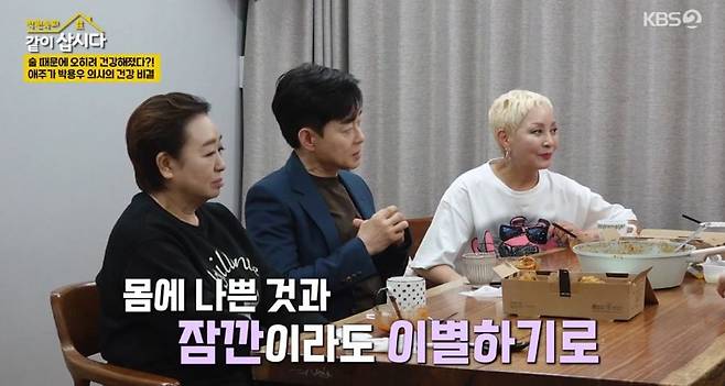 한편 박용우의 반전은 ‘같이 삽시다’ 대표 애주가 홍진희의 ‘술친구’라는 것. 박용우는 “조금 역설적인데 술을 좋아해서 건강해졌다”며 “내 원칙은 술 외에 나쁜 음식은 먹지 않는 것이다. 대표적인 게 달달한 음식이다. 내가 운동을 진짜 싫어하는데 술을 마시기 위해 운동을 한다”고 말했다.