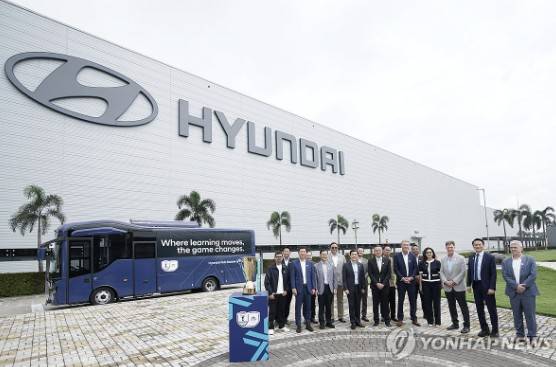 현대차는 이날 조인식에서 동남아축구연맹 후원을 기념해 전기버스 카운티를 개조한 '찾아가는 도서관'도 선보였다.