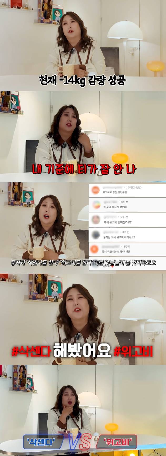 반면 풍자는 위고비에 관해 "위고비는 울렁거리는 느낌은 없고 식욕은 살아있다. 식욕은 살아있는데 많이 들어가지는 않더라. 반공기 먹으면 생각이 없어진다. 삭센다는 울렁거렸는데 위고비는 잘 맞다고 생각했다"라고 말했다.