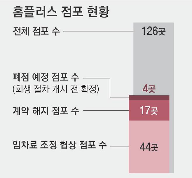 기업회생 절차를 밟고 있는 홈플러스가 건물주와 임차료 조정 협상에 실패한 17개 점포에 대해 계약 해지를 추진하자 해당 점포에 입점해 있는 매장 점주들의 우려가 커지고 있다. 17개 점포의 입점 매장 수는 약 200∼300개다.