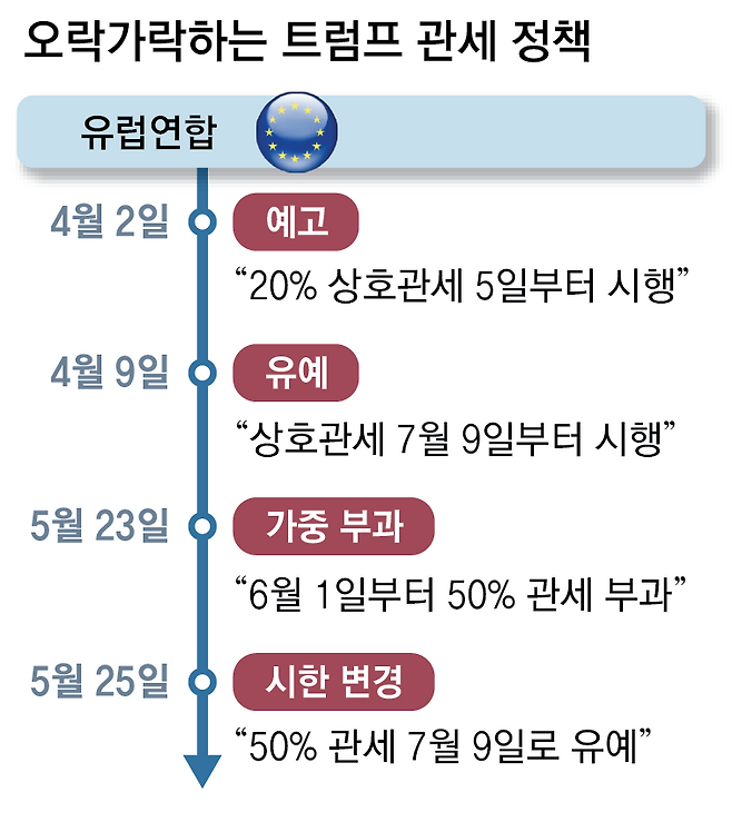 또 말뒤집은 트럼프… “EU 50% 관세” 이틀만에 “7월9일로 유예”