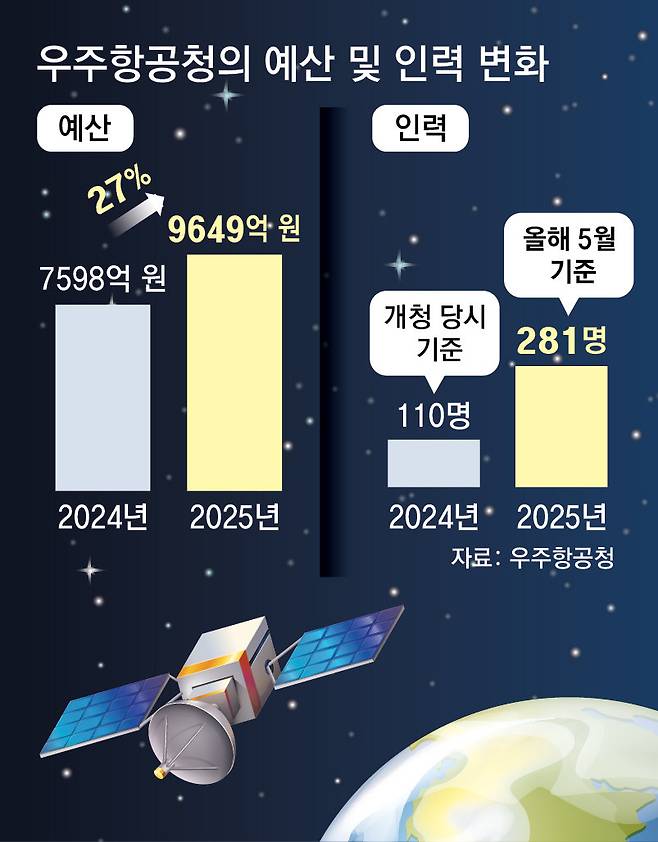 우주청, 인력 2.5배-예산 27% 늘려… 국제협력 확대하고 전략산업 육성