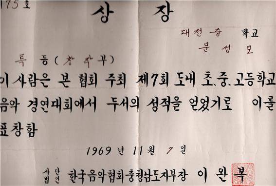 중학교 3학년 가을, 선생님이 나를 따로 부르시곤 “성모야 음악콩쿠르 나가보는 게 어떠니”라고 권하셨다. 당시 한국음악협회 충남지부 주최로 매년 음악콩쿠르가 열렸는데 내게 작곡부(창작부)로 나가보기를 제안하신 것이다. 개인지도도 제대로 받지 못한 상태였지만 순종하는 마음으로 콩쿠르에 임했다.