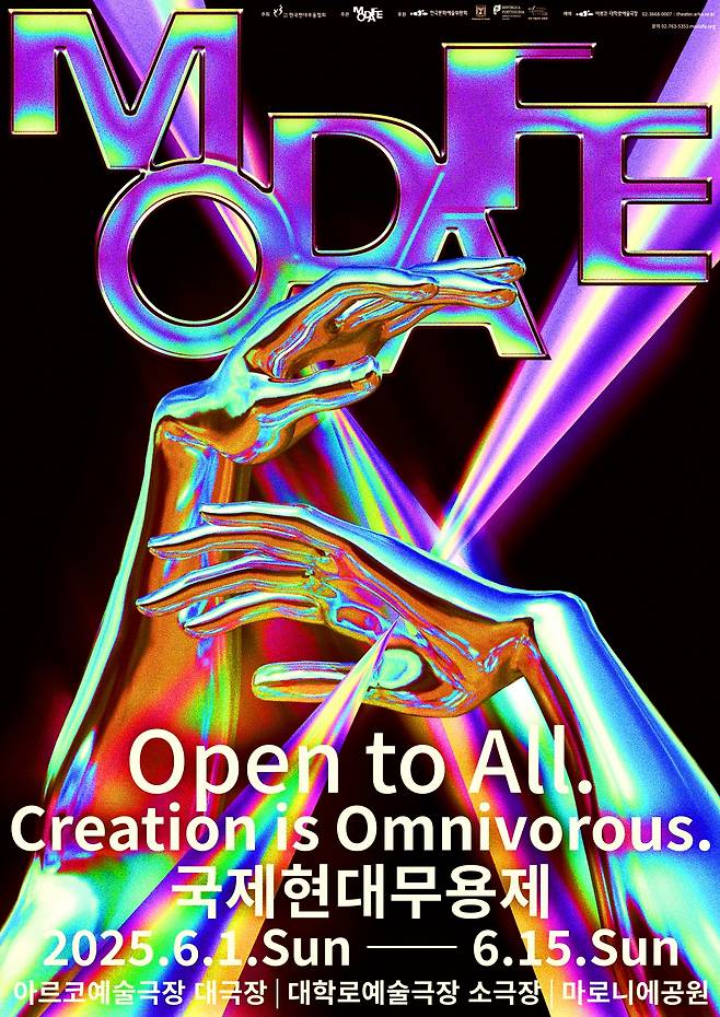 44회째인 올해 모다페는 ‘모두에게 열려 있고, 창작은 잡식성이다’(Open to All, Creation is Omnivorous)를 주제로 다양한 실험의 장을 펼친다. 6월 1~15일 아르코예술극장 대극장, 대학로예술극장 소극장 등에서 14개국 41개 단체의 공연이 펼쳐진다. 한국의 국립 무용단체인 국립현대무용단, 국립무용단, 대구시립무용단의 작품을 선보일 ‘센터 스테이지 오브 코리아’를 필두로 모다페가 초청하는 ‘모다페 초이스’, 공모를 통해 선정된 ‘모다페 컬렉션’, 주목받는 안무가를 소개하는 ‘더 뉴 웨이브’, 해외 우수작을 선보이는 ‘해외 초청작’, 국내 신진 안무가를 소개하는 ‘스파크 플레이스’, 국제공모 경연 프로그램으로 신설된 ‘인터내셔널 스파크 플레이스’가 포함됐다.