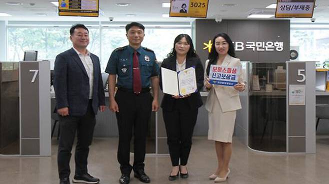 대전동부경찰서는 적극적인 신고로 전화금융사기 피해를 예방한 KB국민은행 가오동지점 직원 A 씨에게 감사장과 신고보상금을 수여했다고 어제(26일) 밝혔습니다.