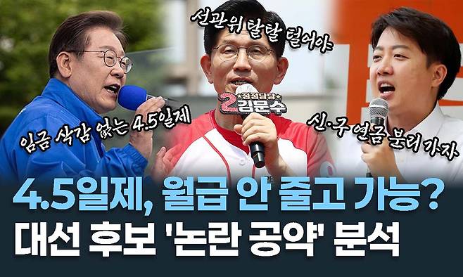 6·3 대선을 앞두고 주목받는 공약 중 하나는 ‘주 4.5일제’다. 이재명 후보는 현행 주 5일(하루 8시간) 40시간인 법정 근로시간을 36시간으로 줄여 주 4일은 8시간씩 일하고 금요일 등 하루는 4시간만 일하는 방식을 내걸었다.