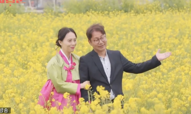 하이라이트는 유채꽃밭 데이트. 두 사람은 영화 ‘폭싹 속았수다’ 속 한 장면처럼 유채꽃밭을 배경으로 한복 차림의 사진을 찍으며 영화 주인공 못지않은 분위기를 자아냈다. 출연진들은 “아이유랑 박보검 같다”며 박수를 보냈고, 심현섭은 “어릴 적 어른들 유채꽃 사진 보며 우리도 저러고 싶었는데 꿈을 이뤄 좋다”며 벅찬 소감을 전했다.