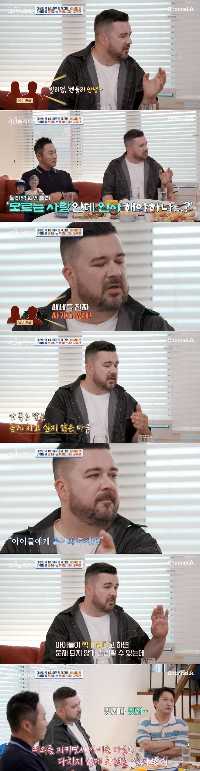 "윌리엄·벤틀리 싸가지 없네" 샘 해밍턴, 행인에 욕 먹은 子 걱정…혼혈+아기스타 위해 '엄격' (4인용식탁)