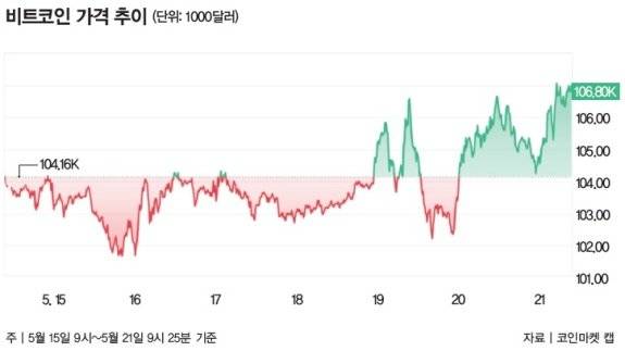 실제로 비트코인 가격은 5월 22일 전 고점을 뚫고 11만 달러 대까지 상승했다.