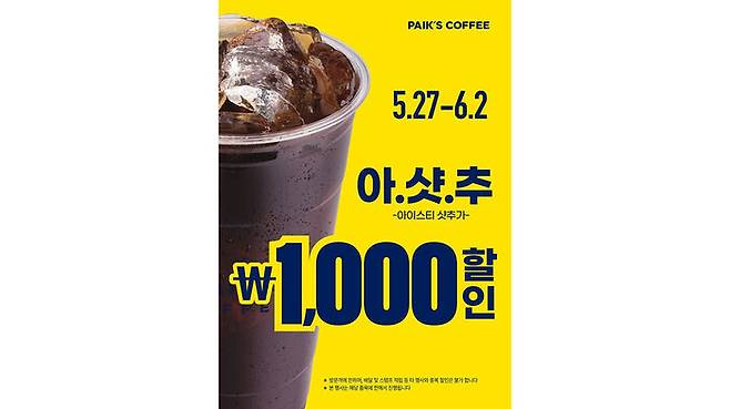 이날부터 다음 달 2일까지 인기 메뉴인 아샷추(아이스티에 에스프레소 샷 추가)를 1천 원 할인합니다.