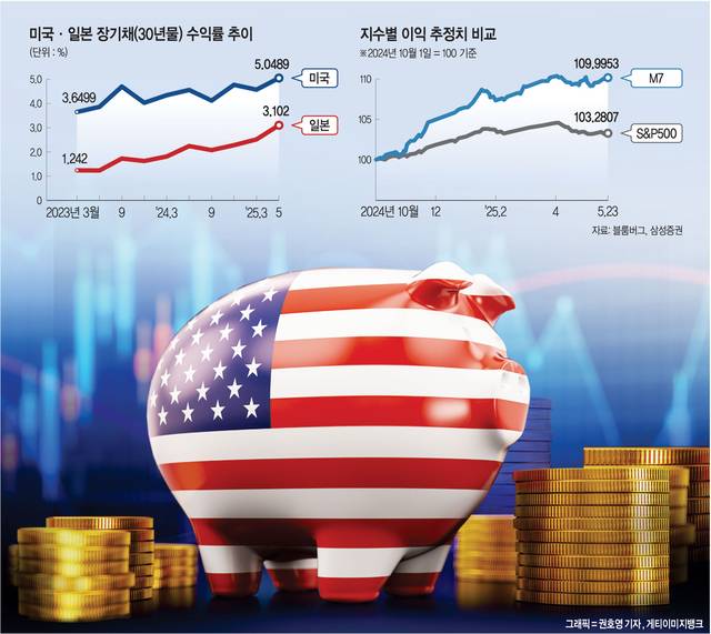 ◇ 요동친 미 국채의 이례적 움직임= 지난 22일(현지시간) 트럼프 2기 행정부와 공화당이 추진하는 대규모 감세 법안이 의회를 통과했다. 하지만 해당 법안은 미국의 새로운 재정 적자 우려를 낳았다. 의회예산국(CBO)은 이 법안이 향후 10년간 미국의 재정 적자를 2조3000억 달러(약 3146조 원) 더 늘릴 것으로 전망했다. 이에 따라 법안 통과 직후 30년물 국채 금리가 5.08%에서 5.16%까지 급등하며, 2007년 중반 이후 최고치에 근접하기도 했다. 하지만 이후 금리는 곧바로 하락세로 전환하며 큰 폭의 내림세로 마감했다.