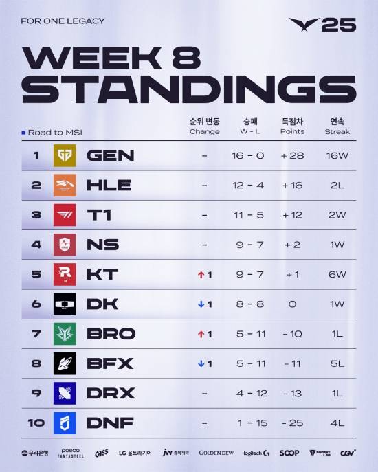 한편, 젠지(GEN)는 정규 시즌 16연승을 기록하며 'MSI 대표 선발전' 1위 자격을 확보했고, 의미 있는 개인 기록도 세웠다.