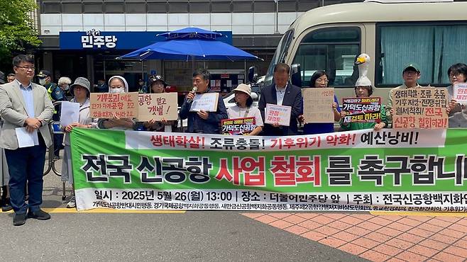 | ▲ 전국신공항 사업철회 촉구 기자회견 5월26일 더불어민주당사 앞에서 전국 신공항 사업 철회 공약을 대선 후보들에게 요구하는 기자회견이 전국신공항백지화연대 주최로 열렸다. |