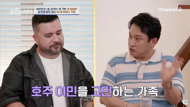 이에 서경석은 “모든 가족이 호주로 이민을 가려고 고민하고 있는 거냐”라고 물었고, 샘 해밍턴은 고개를 끄덕이며 “고민된다. 우리 엄마가 매번 ‘손자들을 보는 게 이번이 마지막일 수 있겠구나’라는 말을 한다. 아버지가 그렇게 됐는데 어머니까지 그렇게 보내면 내가 버틸 수 있을지 모르겠다”라고 속마음을 털어놨다.