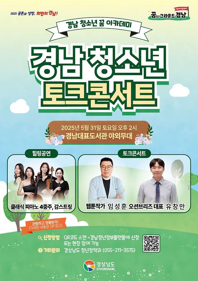 [창원=뉴시스]홍정명 기자 = 경남도는 '경남 청소년 꿈 아카데미 토크콘서트'를 이달부터 연말까지 매월 마지막 주 토요일 경남대표도서관에서 개최한다고 27일 밝혔다.
