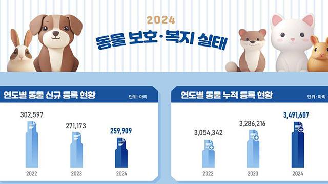 이에 따라 반려견과 반려묘 누적 등록 수는 전년보다 6.3% 증가한 349만 마리로 집계됐습니다.