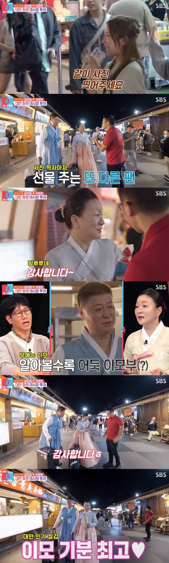 김미령 부부는 대만의 야시장을 찾았다. 야시장에 도착한 김미령은 "엄청나다"며 감탄했다. 지석진은 "진짜 여행 온 느낌이 났을 것 같다"고 말했다. 한복을 입은 김미령이 야시장에 들어서자 사람들이 김미령 주위로 모여들었다. 다들 휴대전화를 꺼내 김미령의 사진을 찍었다. 김미령은 대만 뉴스에 나온 적이 있다.