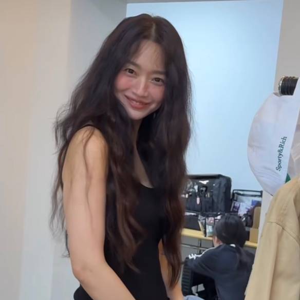 최근 한 촬영현장에서 포착된 신민아. 롱한 기장감의 블랙 맥시 민소매 드레스에 긴 머리에 컬을 주어 풀어내려 신비로운 느낌을 연출했다.