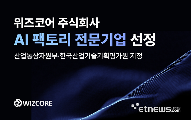 위즈코어(대표 박덕근)는 산업통상자원부가 추진하고 한국산업기술기획평가원(KEIT)이 주관하는 'AI 팩토리 전문기업'으로 지정됐다고 밝혔다.