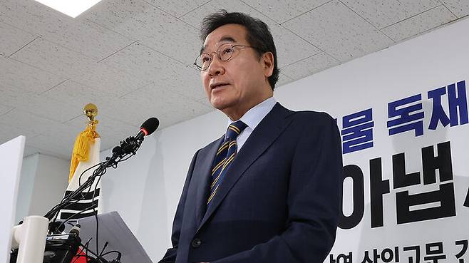 ▲ 새미래민주당 이낙연 상임고문이 27일 서울 여의도 중앙당사에서 긴급 기자회견을 열고 국민의힘과의 선거 연대 방안 등을 설명하고 있다.