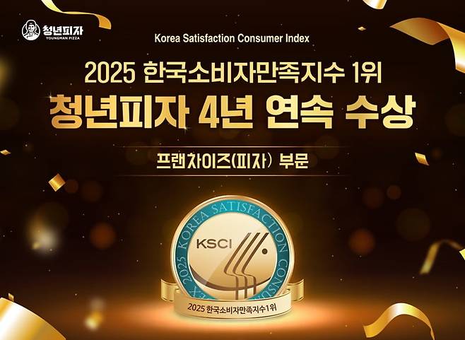 청년피자가 ‘2025 한국소비자만족지수 1위’ 프랜차이즈(피자) 부문을 4년 연속 수상했다.