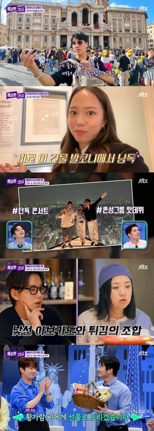 지난 26일 오후에 방송된 종합편성채널 JTBC ‘톡파원 25시’에서는 가수 황가람, 역사 스토리텔러 썬킴과 전 세계가 주목한 프란치스코 교황의 선종부터 미국 독립 혁명과 관련된 역사, 일본 도쿄의 핫한 명소들을 엄선한 랜선 여행을 다채롭게 즐겼다.