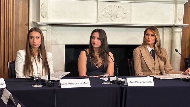 | ▲ 3월 4일 캐피톨 힐에서 딥페이크 음란물의 피해자와 함께 라운드테이블 진행한 멜라니아 영부인(맨 오른쪽) |
