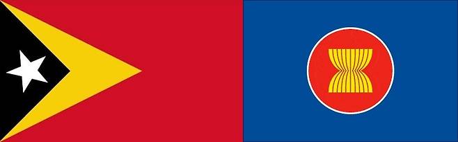 | ▲ 아세안 11번째 정식 회원국이 될 가능성이 매우 높은 동티모르의 국기와 아세안 국가연합기 |
