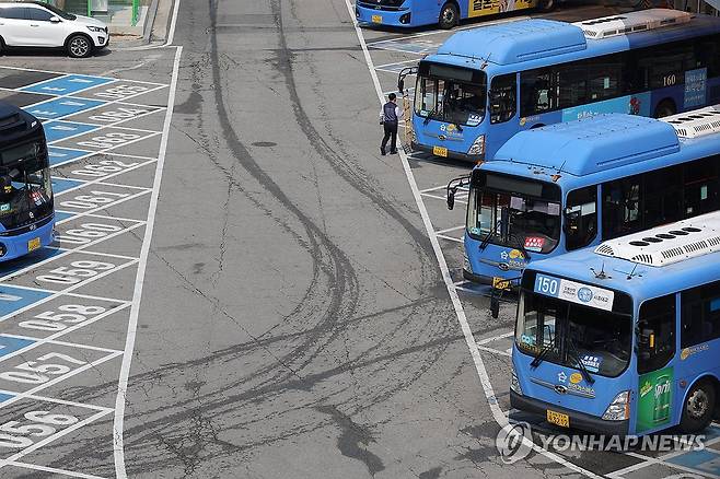 (서울=연합뉴스) 임병식 기자 = 서울 시내버스 파업 예고일을 하루 앞둔 27일 서울시의 한 공영차고지에서 버스들이 운행을 준비하며 대기하고 있다. 2025.5.27