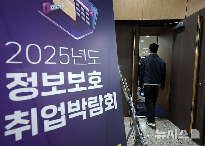 [서울=뉴시스] 이영환 기자 = 27일 오후 서울 강남구 과학기술컨벤션센터에서 열린 2025년도 정보보호 취업박람회에서 취업준비생들이 박람회장으로 들어서고 있다. 2025.05.27. 20hwan@newsis.com