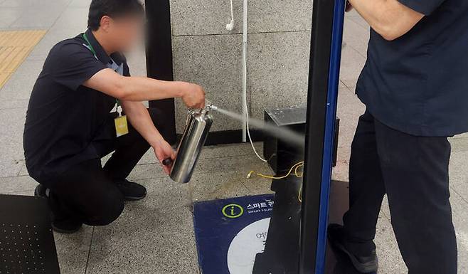 불은 키오스크 아랫부분에서 '펑' 소리와 함께 발생했으며, 역무원들이 키오스크 전원을 차단하고 소화기로 수 분 내 진화해 인명 피해는 발생하지 않았습니다.
