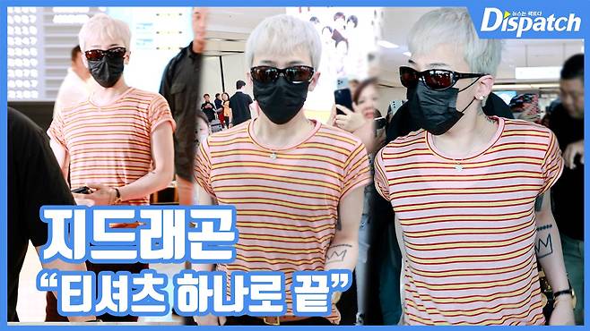 이날 지드래곤은 스트라이프 티셔츠에 블랙 팬츠를 매치해 멋을 냈다. 패셔니스타답게 심플한 공항패션도 남다른 자태를 뽐냈다.